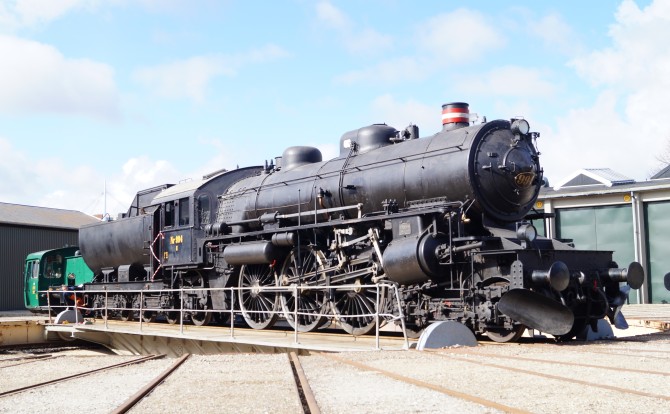 Bild unten: Die in Dänemark neu gebaute Schwesterlok E 994 der DSB auf der Drehscheibe des Museums in Odense. Copyright: J.Franke