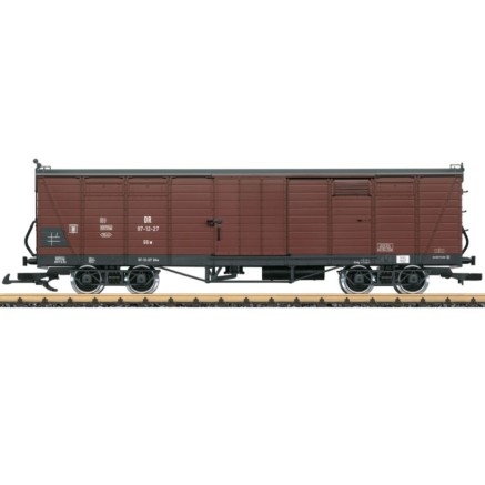 der gedeckte sächsische Güterwagen in der Beschriftung als GGw der DR, Ep.III