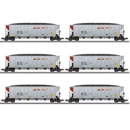Mit den sogenannten Coal-Hopper Waggon wird in den USA heute der Kohleverkehr von den Tagebauen zu den Kraftwerken bewältigt. Insgesamt gibt es 18 Wagen unterschiedlichen Betriebsnummern. (12x Märklin / 6x TRIX)
